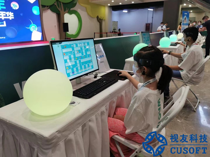 本次赛事中青少年脑机接口项目是基于视友科技研发的“冰岛救援”项目:选手需要在规定时间内,对屏幕中那些错综复杂的冰道中,不断出现且颜色各异的小船进行快速甄别,再通过鼠标点击栅栏,改变小船航道,使小船达到对应颜色的船坞得到相应分数,如一旦选择错误、时间分配不当都将减少得分。