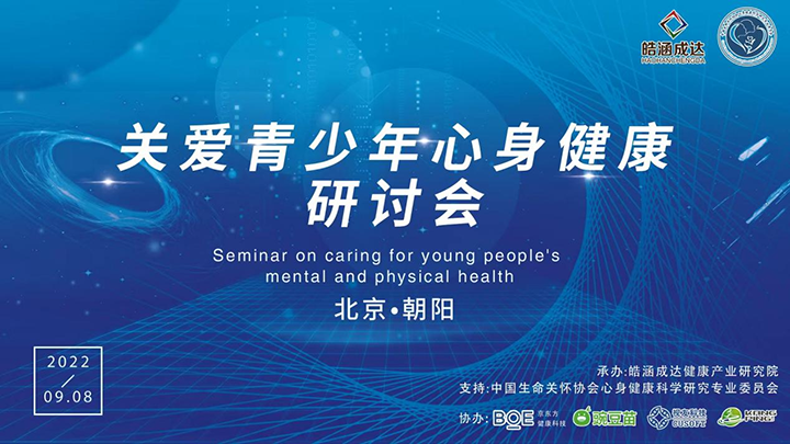 2022年9月8日下午,由皓涵成达健康产业研究院承办、中国生命关怀协会心身健康科学研究专业委员会(简称中关协心身委)支持;京东方健康科技、视友科技、豌豆苗健康科技、北京康萍科技等多家单位和社会团体共同发起的关爱青少年心身健康研讨会在北京成功举行。
