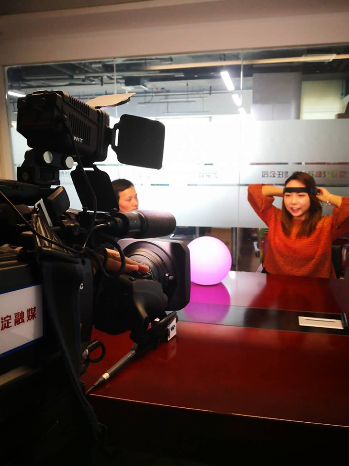 海淀电视台的记者兴奋地体验大脑360和思语脑波灯