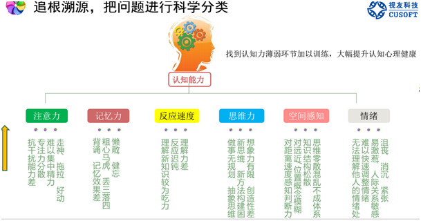 据悉该系统主要对人的大脑的认知能力 (反应力、注意力、记忆力、空间感知力、情绪管理力、思维力等) 进行科学地测评分析,并根据情况智能创建训练课程,训练更科学、系统化。针对认知力薄弱环节训练,可大幅提升认知能力。