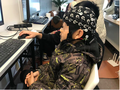 清华大学医学院的专业脑电波设备测量小朋友的大脑发育情况
