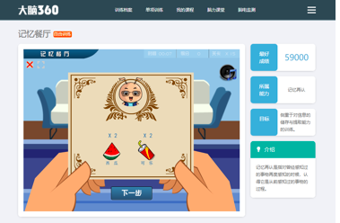 视友科技的大脑360中训练项目——“记忆餐厅”专门对记忆再认功能进行训练
