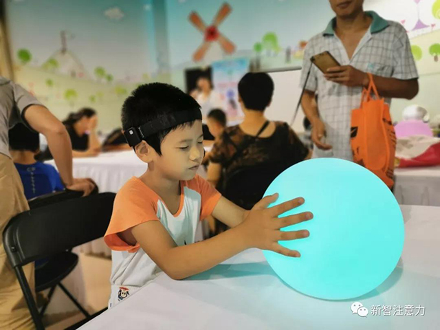 新智注意力的思语脑波灯又名“脑波情绪灯”,是一款将脑电生物反馈技术与认知心理结合的设备,已经在很多的中小学使用。通过可穿戴设备CUBand便携式脑波仪,感知学员当前的情绪状态,让全彩色LED灯的色彩变化,让学员了解到自己当前的情绪状态,在专业心理老师的引导下,帮助孩子通过脑波正念反馈训练、冥想放松训练等,逐步让让孩子具备管理自我情绪的能力;对于考前焦虑、紧张,情绪敏感对抗的孩子特别有帮助。