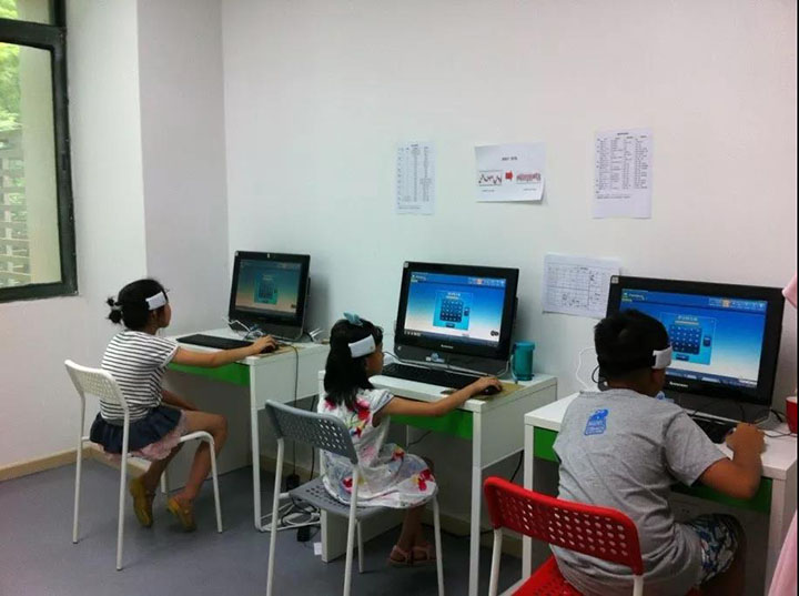 目前,全国不少中小学已开始尝试针对性的数学能力提升训练。如北京理工大学附属中学、天津市塘沽育才中学、深圳实验学校、成都树德中学等,采用北京视友科技研发的大脑360认知能力训练与脑电分析系统,60余个训练项目,以游戏方式呈现,设定一定的训练目标,孩子在乐趣的引导下完目标。就比如说下面这个“水吧服务生”的训练项目: