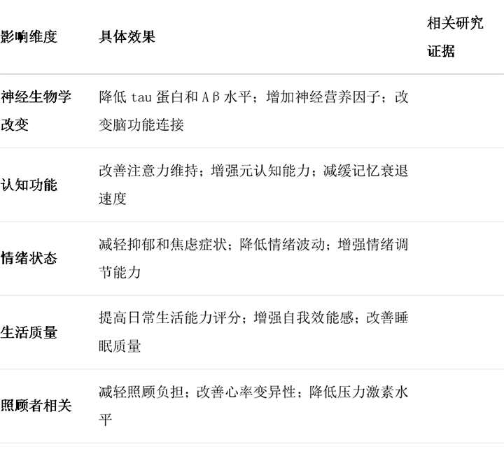 表:正念训练对老年痴呆症患者及照顾者的多维影响