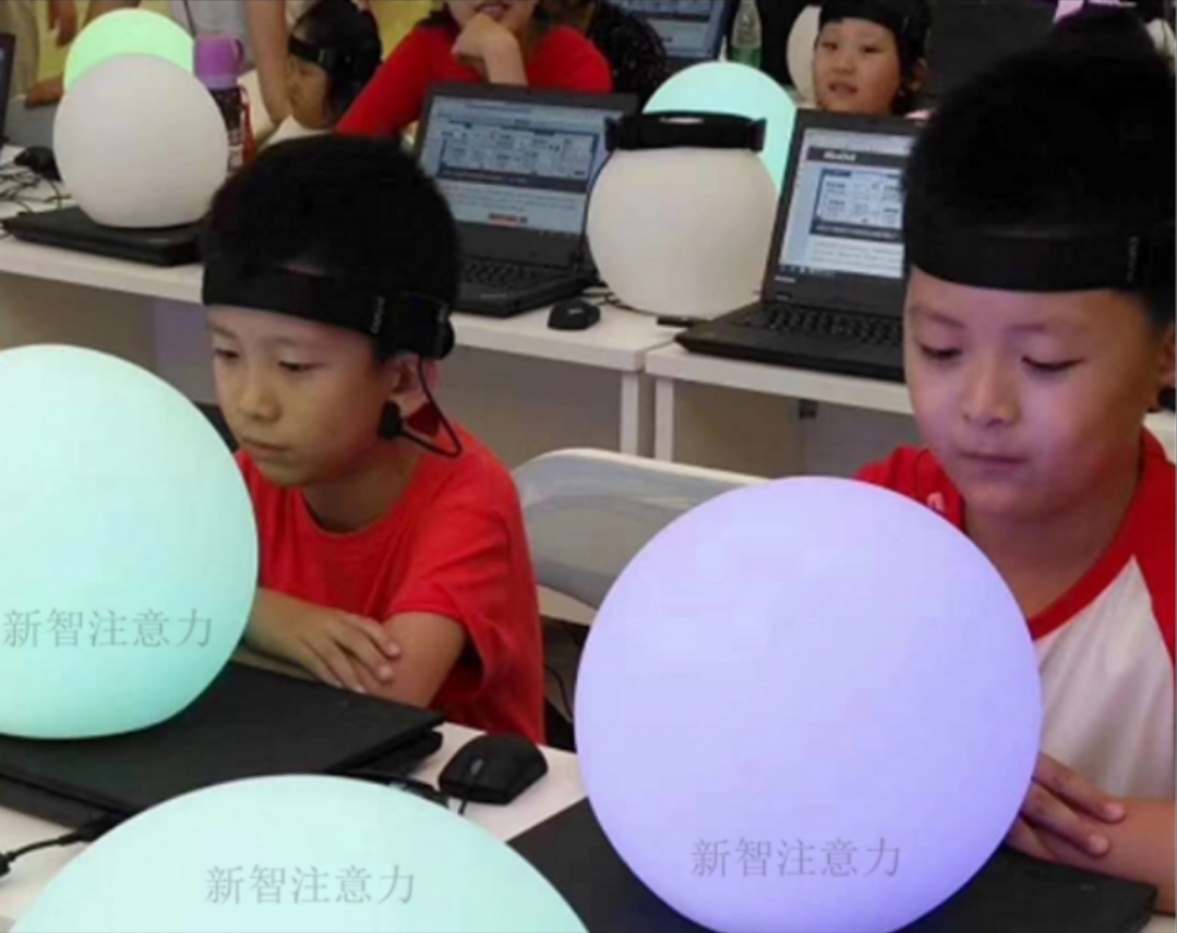 新智注意力的老师在Ego正念脑波舱的指导下练习关注呼吸